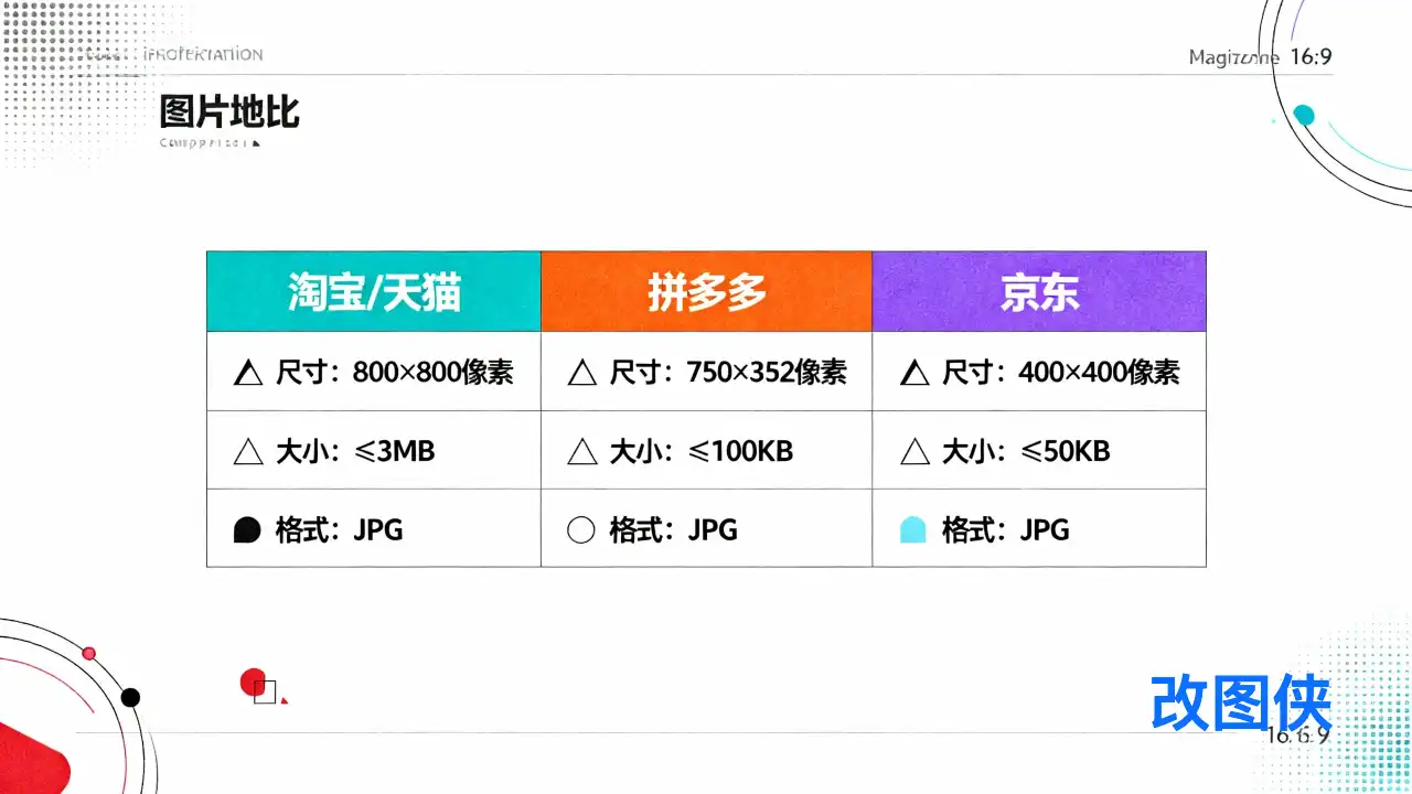 图1:淘宝、京东、拼多多三大平台的商品图片尺寸和大小要求详解